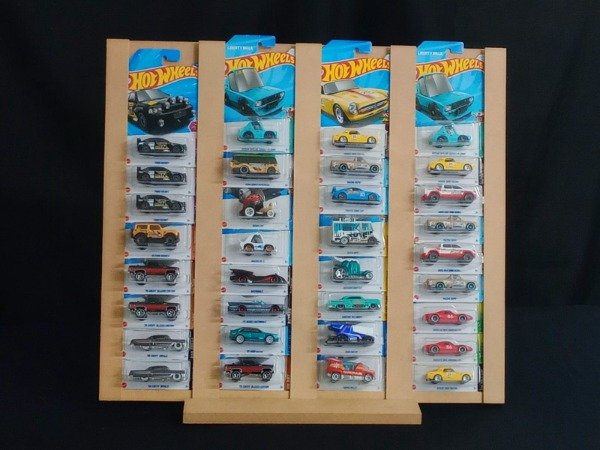 El blistero mide 56cm de largo x 50cm de alto. Cada lugar para poner los blister mide 11cm.